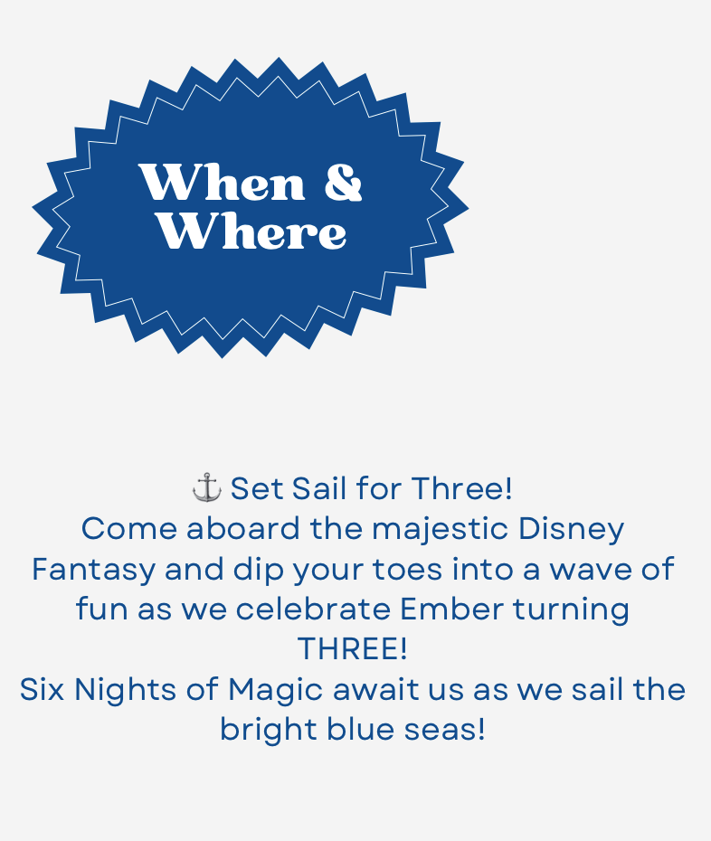 To ensure all our family and friends are grouped together and receive the best possible rate and amenities, all reservations for Ember’s birthday cruise must be booked directly through Krystel, who is a travel advisor.